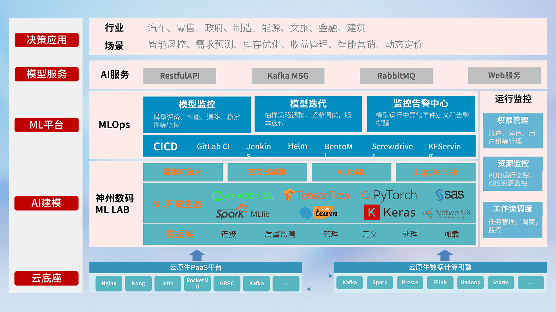 数据+模型双引擎驱动,,面向智能服务场景,,快速灵活利用AI技术,,支持业务决策,,,助力企业智能化转型破局。。